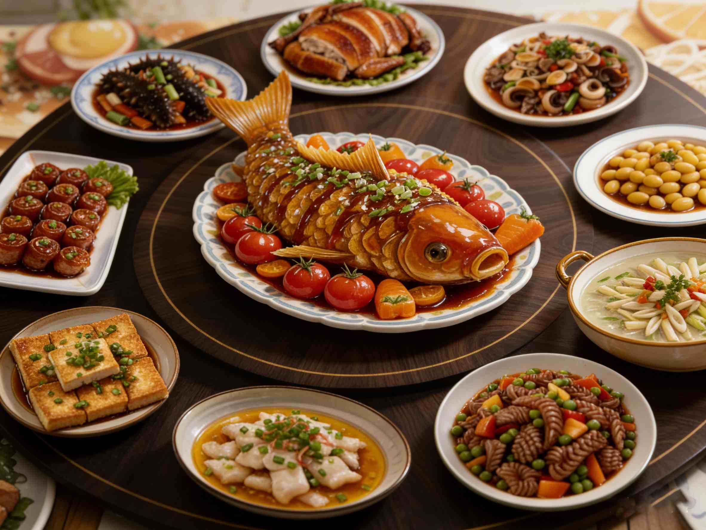ပုံမှန် တရုတ်အစားအစာတွင် အအေးဟင်းများကို ဦးစွာ ကျွေးမွေးပြီး ပူပူနွေးနွေး သင်တန်းများ နှင့် နောက်ဆုံးတွင် အချိုပွဲများ သို့မဟုတ် သစ်သီးများ။ သို့သော်လည်း ဤအစီအစဥ်ကို တင်းကြပ်စွာ မလိုက်နာဘဲ တရားဝင် သို့မဟုတ် အရေးပါသော အခါသမယများတွင် ပို၍အဖြစ်များပါသည်။
